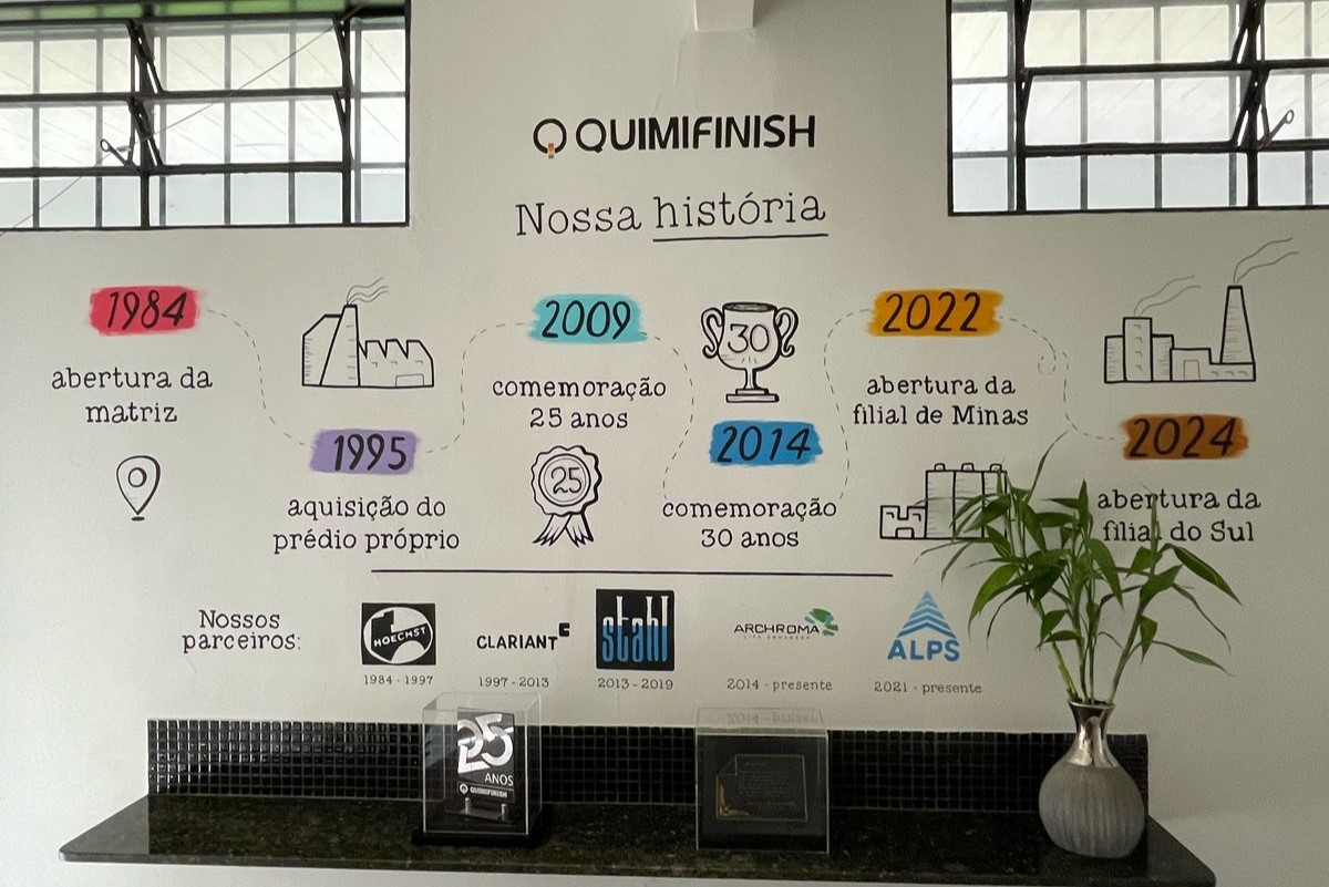 Fundada em 1984 pelos sócios Agenor Gado e Dorival Mourão Filho, a Quimifinish é uma empresa referência na área de produtos especializados para couros.